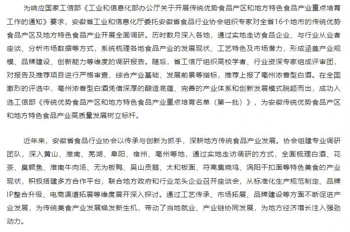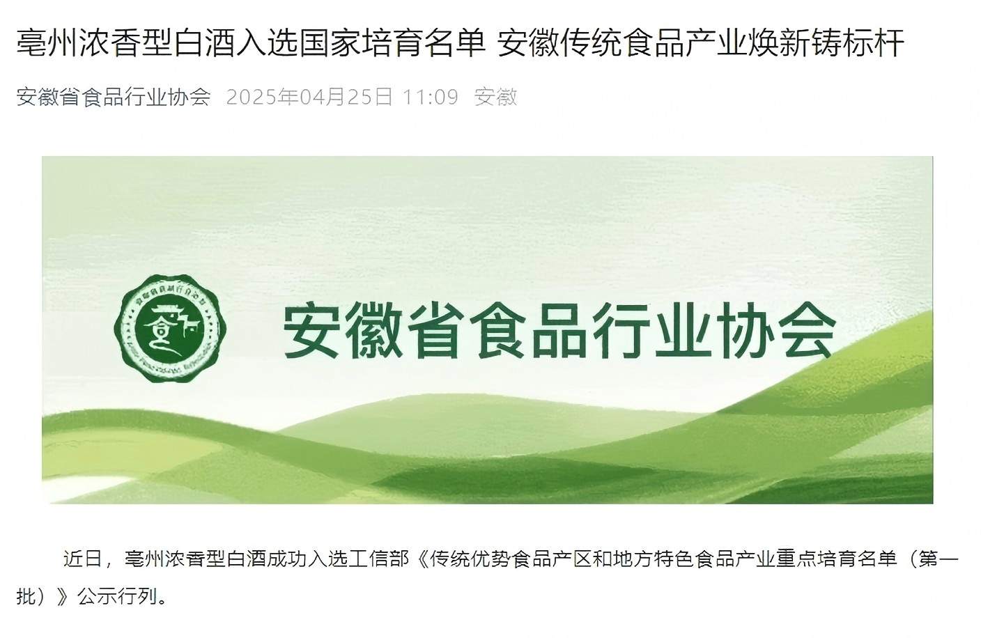 亳州浓香型白酒入选国家培育名单 安徽传统食品产业焕新铸标杆